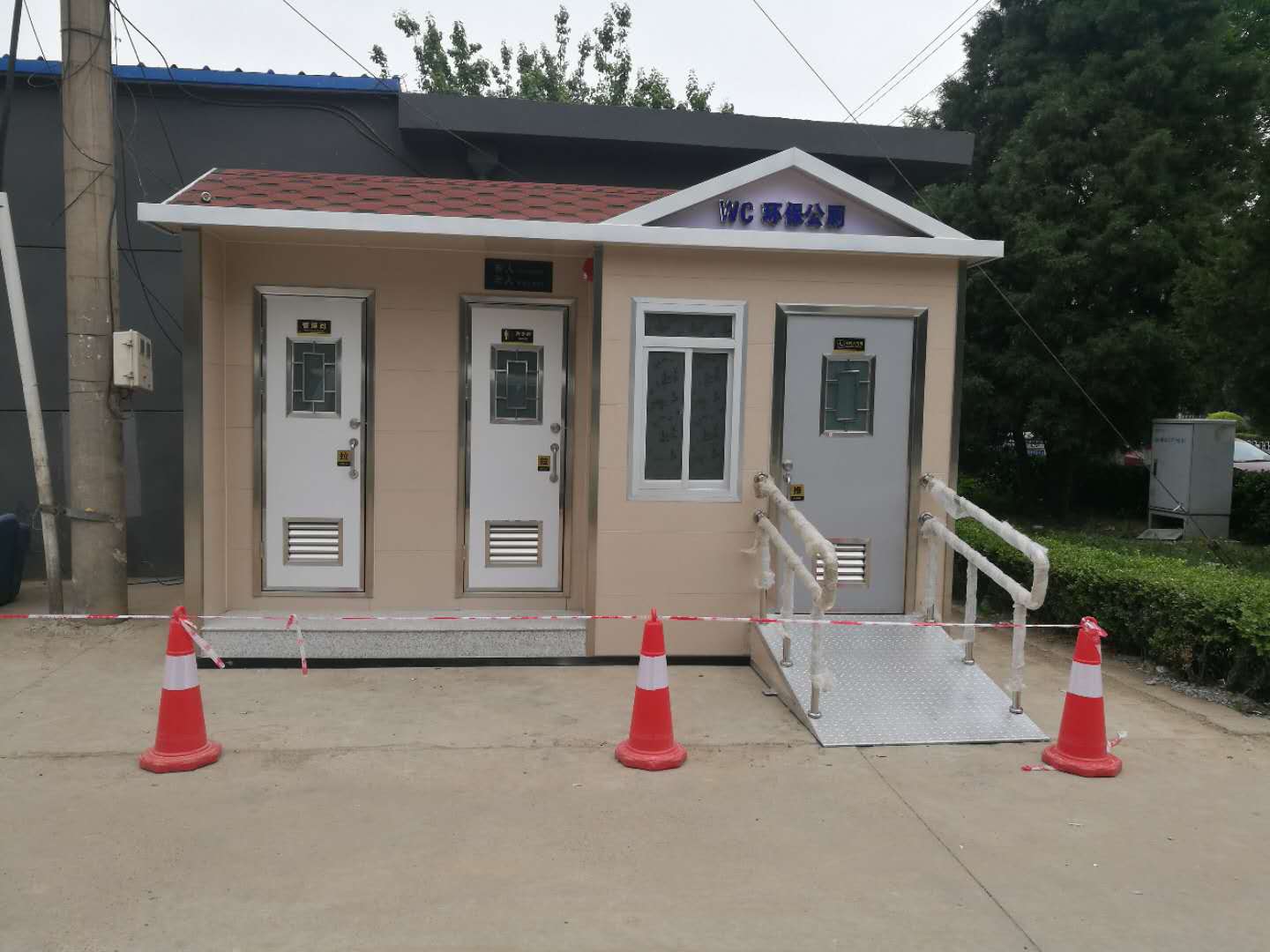 當然,移動廁所不會受到任何工作環(huán)境的限制,其外部結(jié)構(gòu)特別輕。整個顏色在搭配過程中特別合理,適合安裝在一些不同的城市街道或大型公共場所,尤其便于移動。移動廁所是由鋼焊接而成的框架結(jié)構(gòu)。通常,底部用槽鋼或工字鋼焊接,立柱用方鋼制成。在墻體的基礎上,安裝墻體材料,包括彩鋼板、金屬雕版、鋁塑板、防腐木等??蚣苁綑C構(gòu)可以滿足提升要求,可以移動挪威進行提升,因此被稱為移動廁所。本發(fā)明不受任何工作環(huán)境的限制,外觀結(jié)構(gòu)輕巧,配色合理,適用于城市街道、公園綠化、車站、碼頭、旅游景點、別墅區(qū)、新建住宅區(qū)、大型建筑工地、廣場、人口稠密的公共場所和繁華的商業(yè)街。移動式公廁具有可移動、可組合、便于運輸?shù)膬?yōu)點。此外,移動廁所的內(nèi)部配置高于普通固定廁所。
