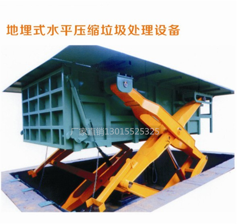 1.主要特點(diǎn)     ◇平穩(wěn)可靠:兩側(cè)舉升,剪叉跨度大,升降平穩(wěn),無傾斜;     ◇淺地坑:地坑深度僅為1.55m,保潔及維修極為方便;     ◇高效率:壓實(shí)每噸垃圾時間≤10min;     ◇全封閉水平壓縮:采用水平壓縮方式,垃圾壓縮密度≥0.86t/m3,垃圾壓縮后體積大大減小,從而大幅度提高轉(zhuǎn)運(yùn)車輛裝載量和轉(zhuǎn)運(yùn)效率,降低垃圾處理、轉(zhuǎn)運(yùn)等費(fèi)用;     ◇動作少,故障率低,整套設(shè)備的垃圾壓縮、裝車由三個動作完成,簡單實(shí)用,各動作之間安全互鎖,防止操作人員誤操作造成安全事故,安全可靠;     ◇垃圾儲存、壓縮及寄存全部在地面以下,地面上沒有垃圾散落,對環(huán)境影響較小,環(huán)保性好;垃圾壓縮后密度高,水份少,可避免汽車運(yùn)輸中的垃圾散落、污水滴漏現(xiàn)象,避免二次污染;     ◇土建費(fèi)用低,占地面積小,可以不蓋大型工作間,既節(jié)約了投資,也縮短了工期;     ◇留有專門的維修窗口,維修保養(yǎng)方便;     ◇設(shè)有固定式操作和遙控器兩種操作模式,方便實(shí)用;     ◇自動化程度高,可大幅提高工作效率,降低勞動強(qiáng)度。