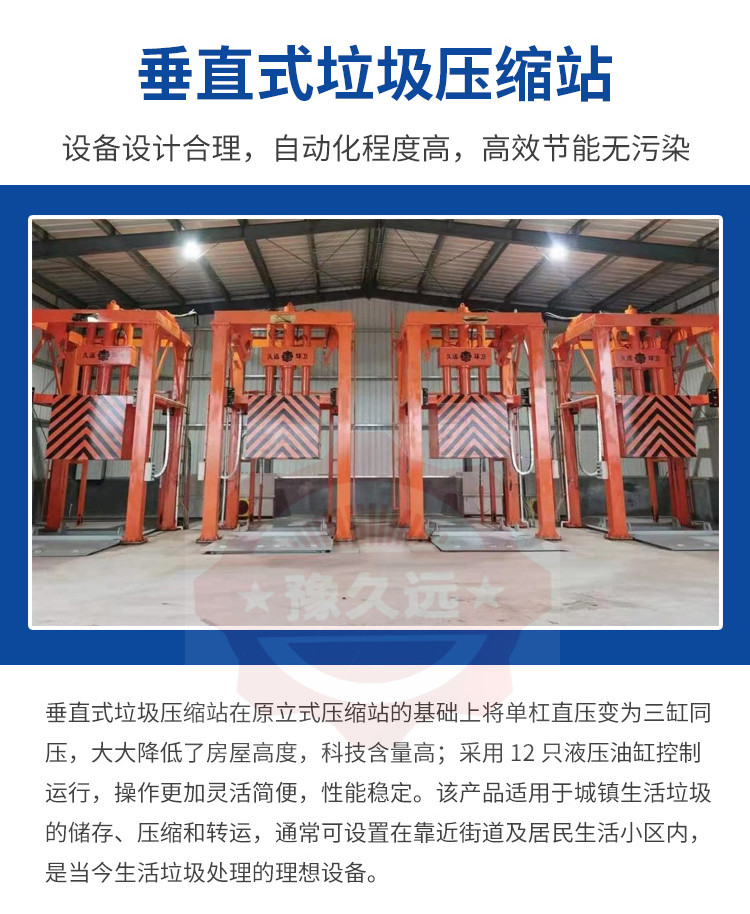垂直式垃圾壓縮設(shè)備在原立式壓縮站的基礎(chǔ)上將單杠直壓變?yōu)槿淄瑝?,大大降低了房屋高度,科技含量高;采?2只液壓油缸控制運行,操作更加靈活簡便,性能穩(wěn)定。該產(chǎn)品適用于城鎮(zhèn)生活垃圾的儲存、壓縮和轉(zhuǎn)運,通??稍O(shè)置在靠近街道及居民生活小區(qū)內(nèi),是當(dāng)今生活垃圾處理的理想設(shè)備。